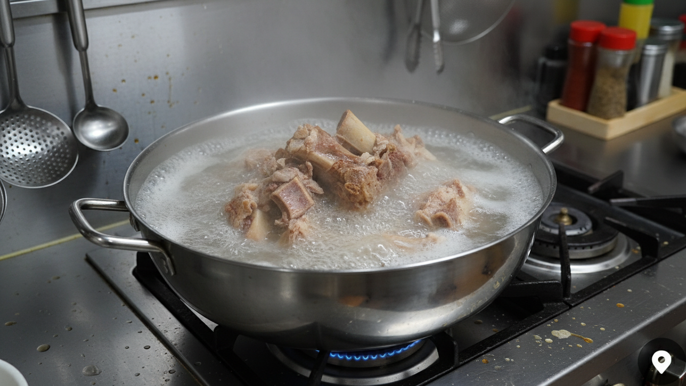 돼지등뼈 삶는법은 감자탕 맛의 70퍼센트를 차지합니다. 이 과정이 부족하면 아무리 양념을 잘해도 깊은 맛이 나지 않습니다.