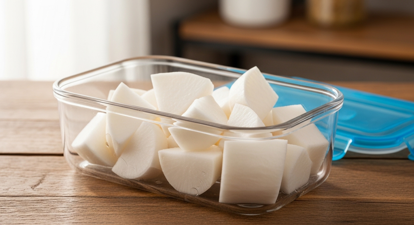 채 썰거나 깍둑 썰어 밀폐 용기에 담아 냉장 보관합니다. 이 경우 3~4일 이내에 사용하는 것이 좋습니다.