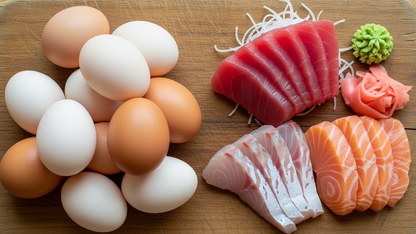 - 날생선/회 : 회 속 효소와 계란 단백질이 만나면 소화 기능에 부담을 줄 수 있다는 보고가 있어 민감한 분에게는 좋지 않은 조합입니다.