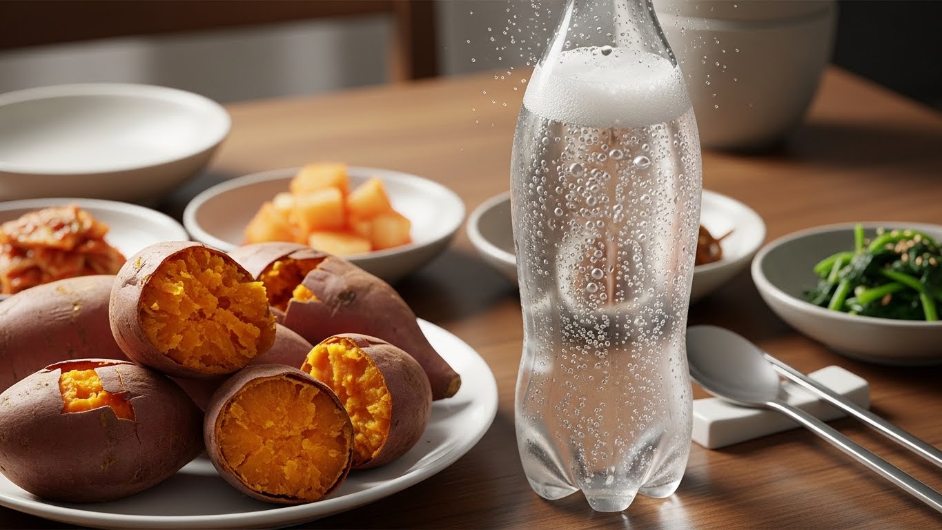 고구마 자체가 장에서 발효되며 가스를 유발하는데, 여기에 탄산까지 더해지면 위 확장감이 크게 증가합니다.
