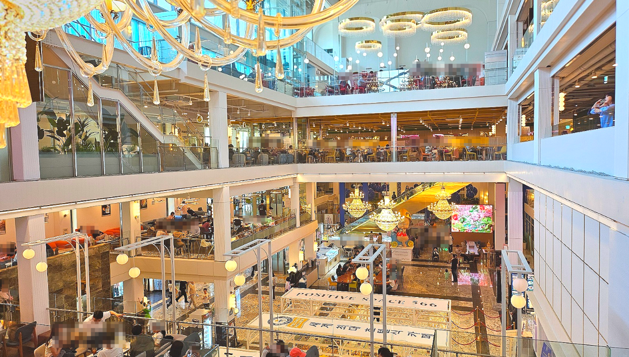 실내 좌석만 2,190개로 대기 시간이 필요없을 정도로 충분합니다. - 건물 구조