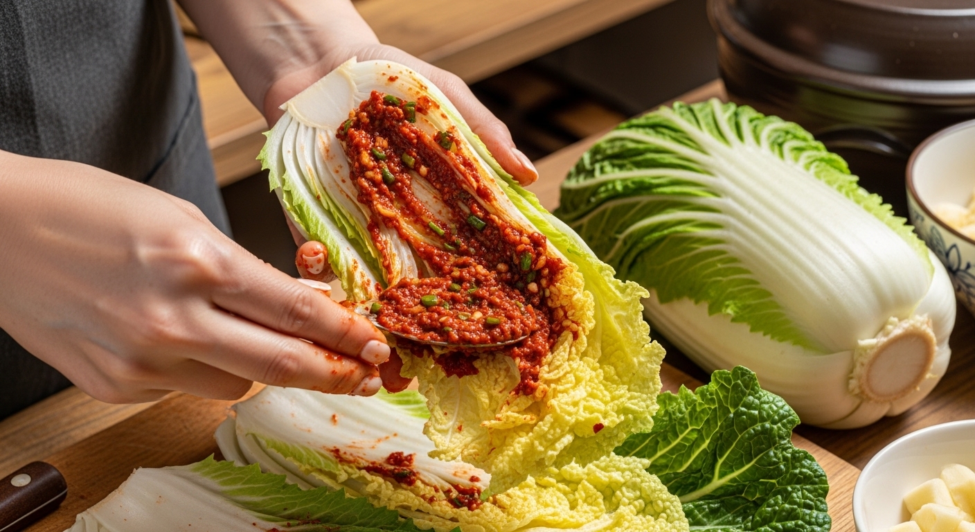 맹물 대신 황태 머리와 국물용 멸치, 다시마, 건표고버섯, 대파 뿌리, 양파 껍질 등을 넣고 푹 끓인 육수를 사용하여 찹쌀풀을 쑤어줍니다. 이 육수는 천연 조미료 역할을 하여 젓갈 특유의 비린 맛을 잡아주고 감칠맛을 극대화합니다.