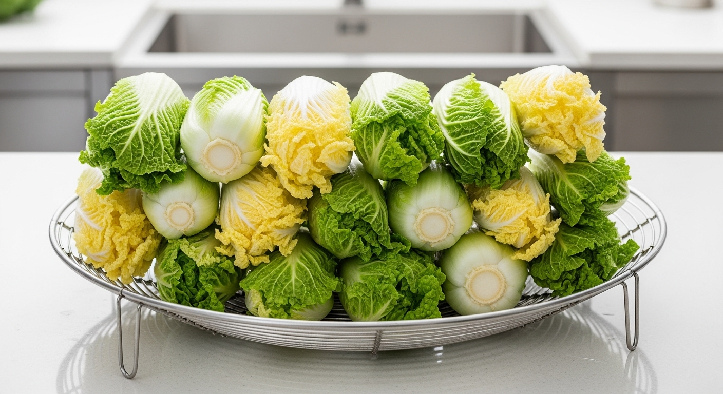 - 완벽한 물기 제거 확인 : 배추를 살짝 쥐어짜 보았을 때 물이 똑똑 떨어지지 않고 촉촉함만 느껴지는 정도가 적당합니다.