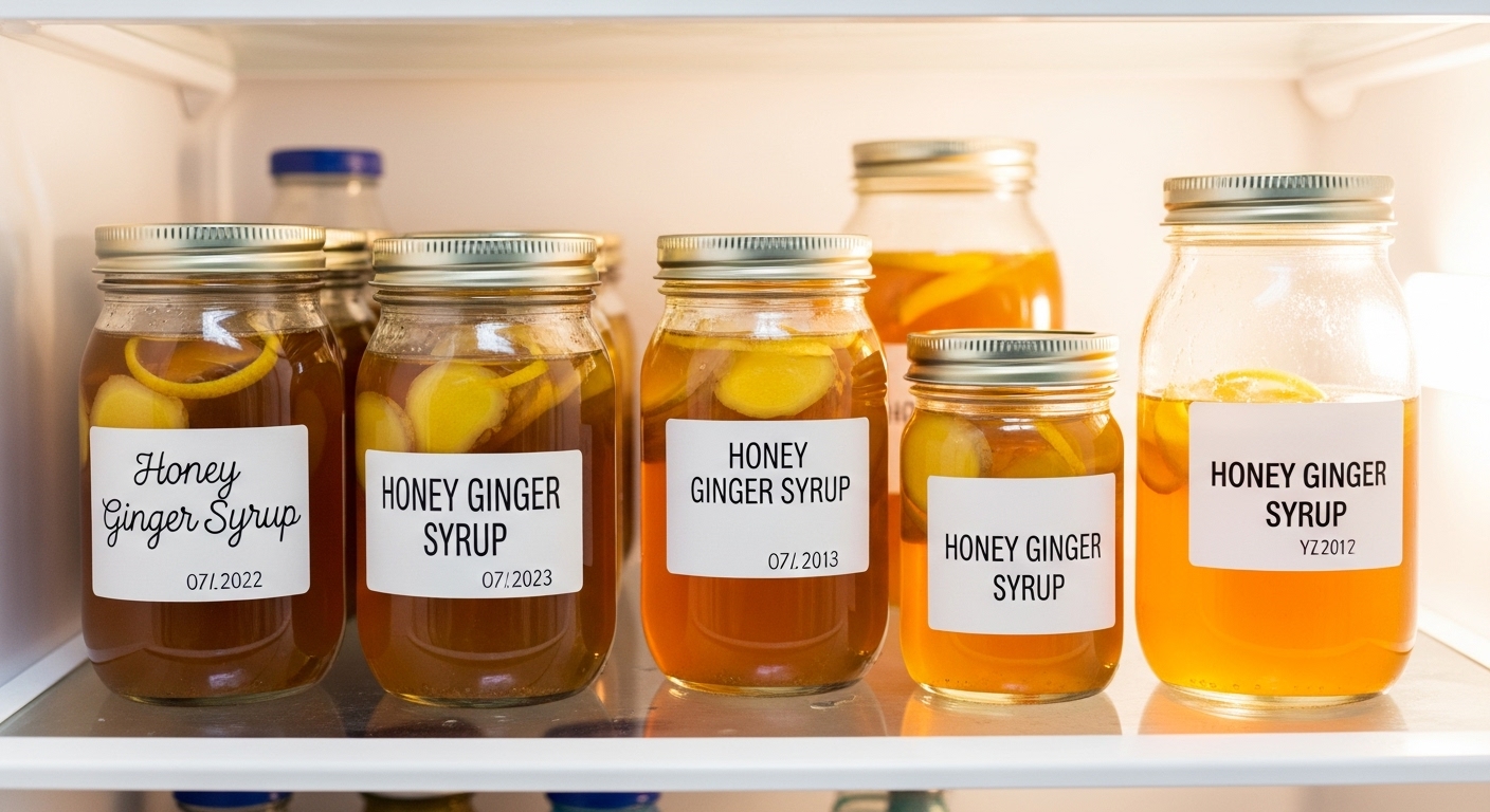 아무리 잘 만들어도 보관이 잘못되면 맛이 변하거나 곰팡이가 생길 수 있습니다. 꿀생강청은 청결과 온도 유지가 핵심입니다.