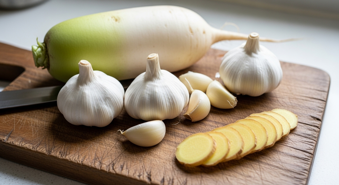 - 좋은 무 고르기 : 무는 단단하고 표면이 매끄럽고 초록색 부분이 많은 것이 좋습니다. 너무 크지 않은 동치미용 무(총각무가 아님)를 선택하는 것이 아삭한 식감을 살리는 데 유리합니다.