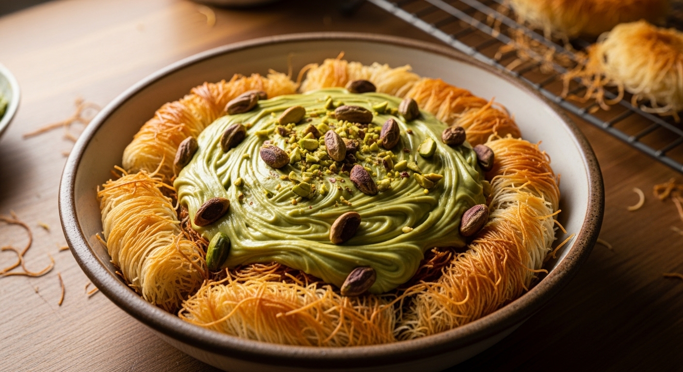 - 가운데에 카다이프 피스타치오 필링을 올립니다.