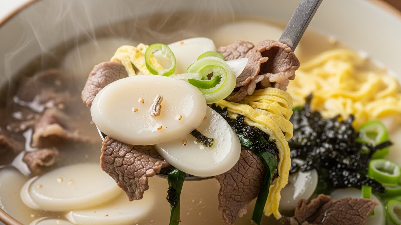 - 이 과정에서 국물 맛이 한 번 더 정리됩니다. 전체적으로 깔끔한 떡국 맛을 완성할 수 있습니다.