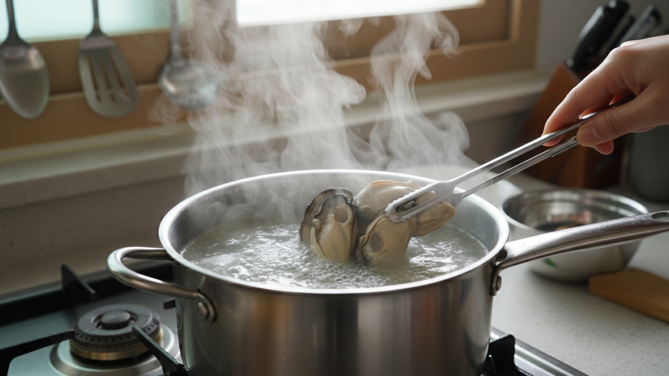 - 굴은 끓는 물에 오래 두지 않아야 질기지 않습니다.