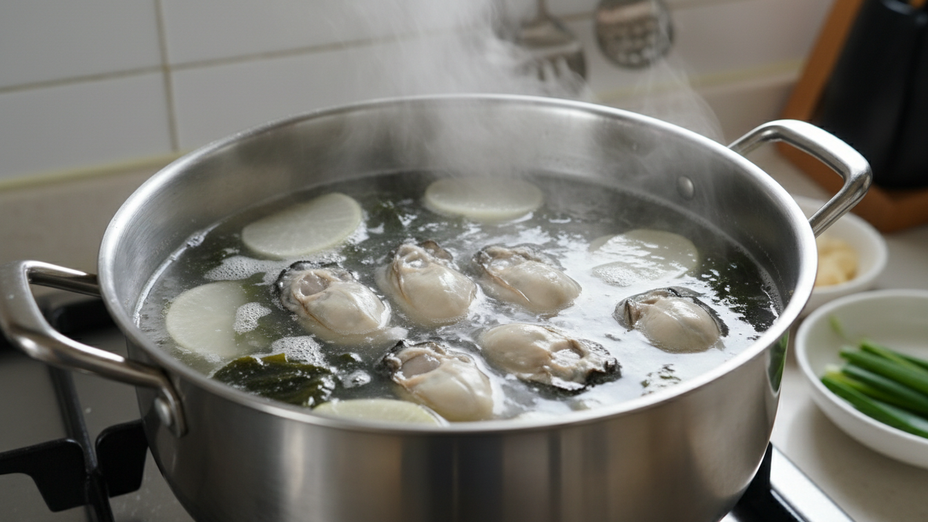 국물 비법을 알면 매생이굴국의 깊이가 달라집니다. 자극적인 양념 없이도 자연스럽게 단맛과 감칠맛을 끌어낼 수 있습니다.