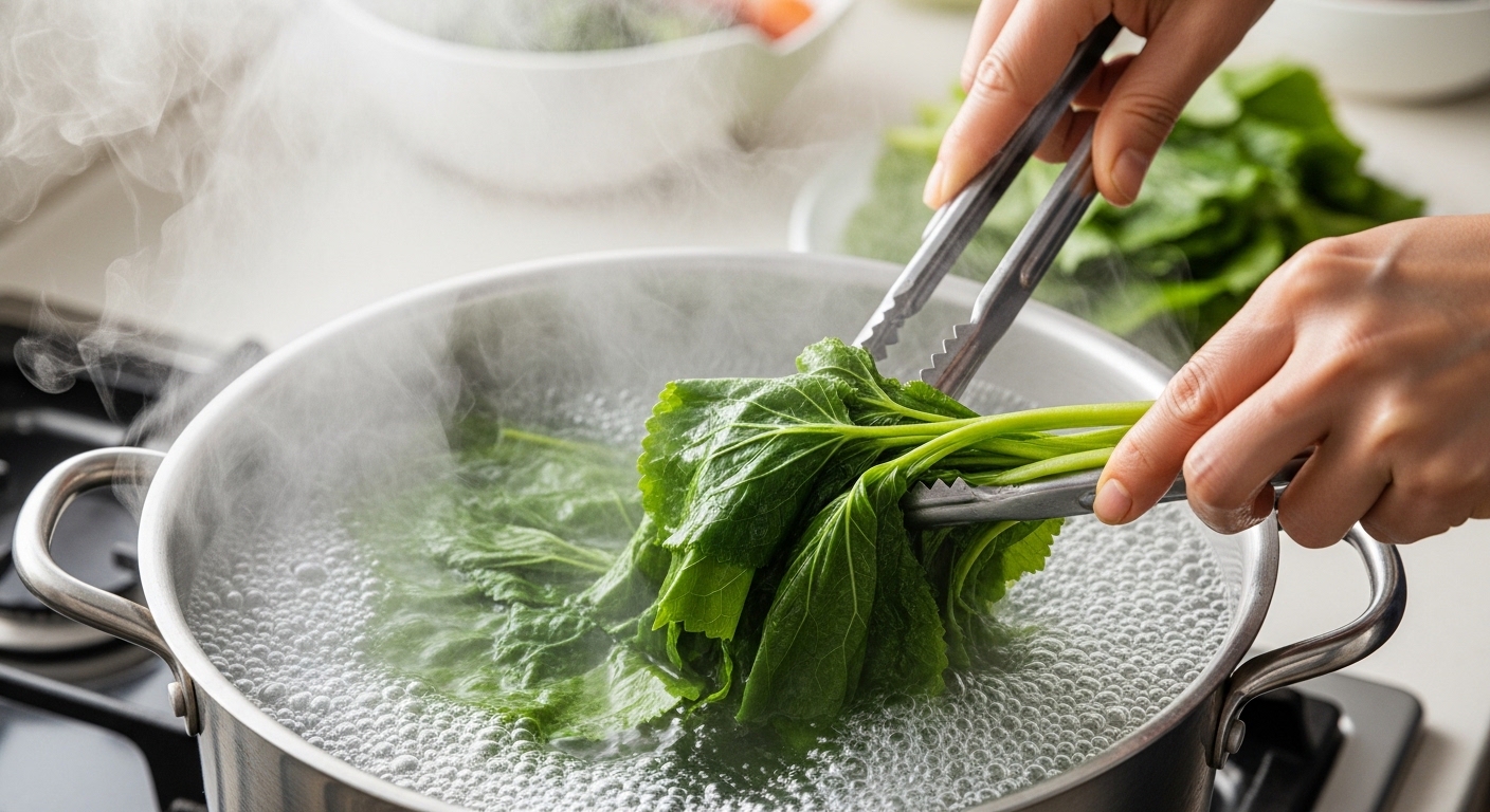 A. 데친 후 찬물에 담가 두는 것이 가장 효과적입니다. 이 과정이 맛을 좌우합니다.