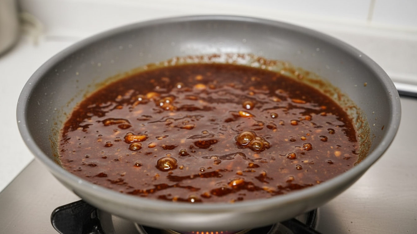 - 간장과 설탕을 넣고 약불에서 살짝 끓입니다.