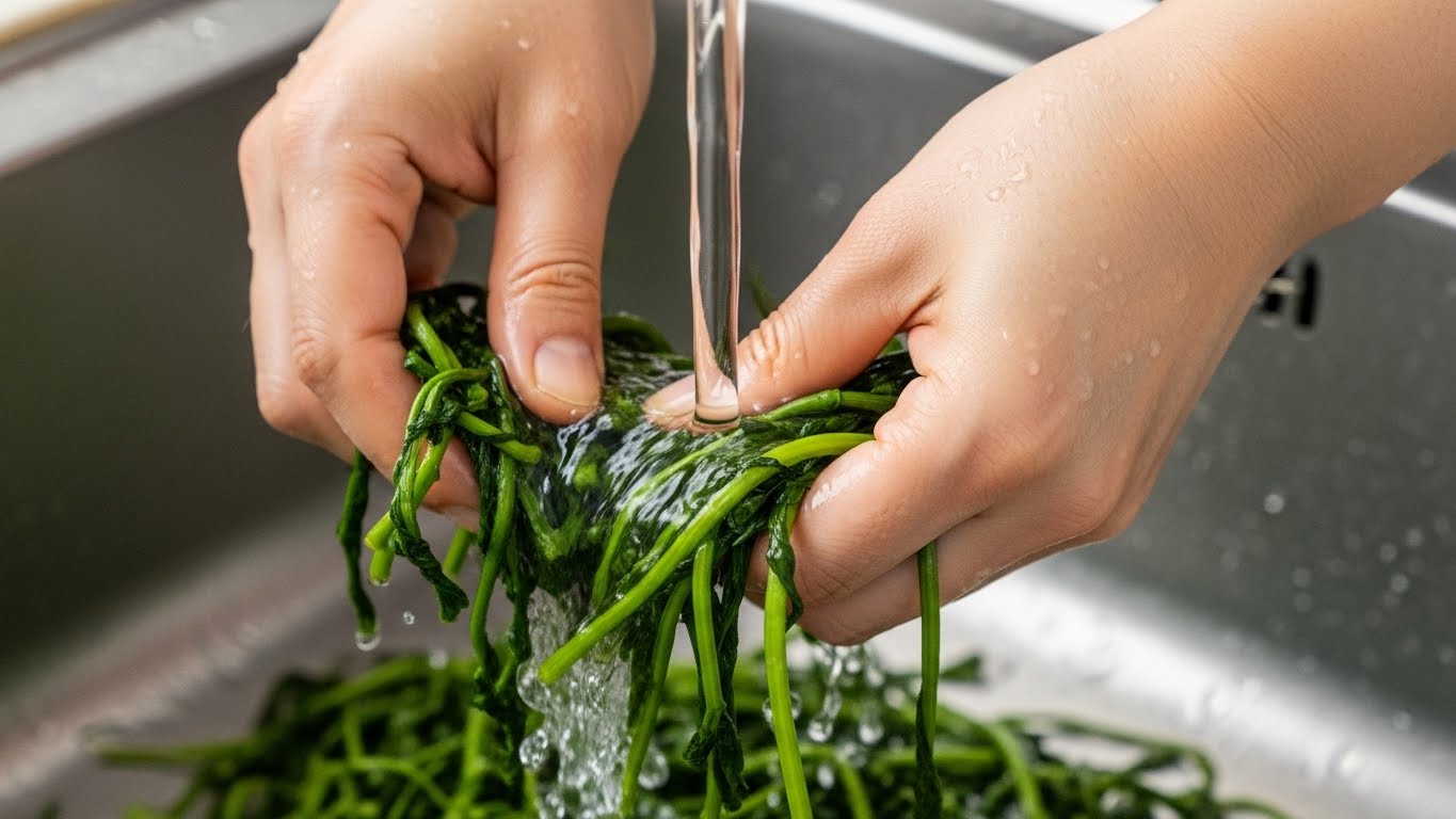 - 흙과 잔털을 제거하기 위해 흐르는 물에 가볍게 씻고 채반에 물기를 자연스럽게 빼줍니다.