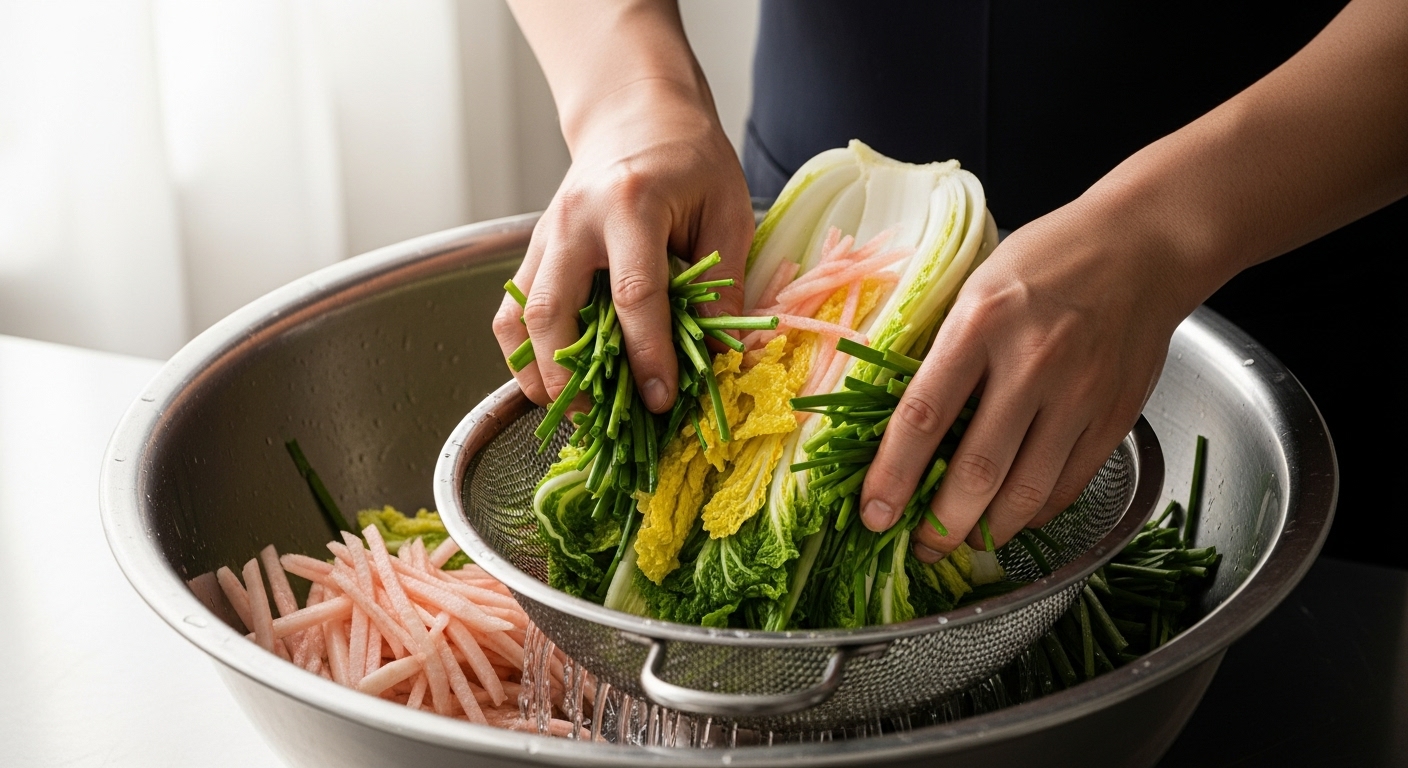배추겉절이를 제대로 만들기 위해서는 절임 시간과 물기 제거가 가장 중요합니다. 이 두 가지가 맞아야 양념이 잘 스며들고 배추 식감도 유지됩니다.
