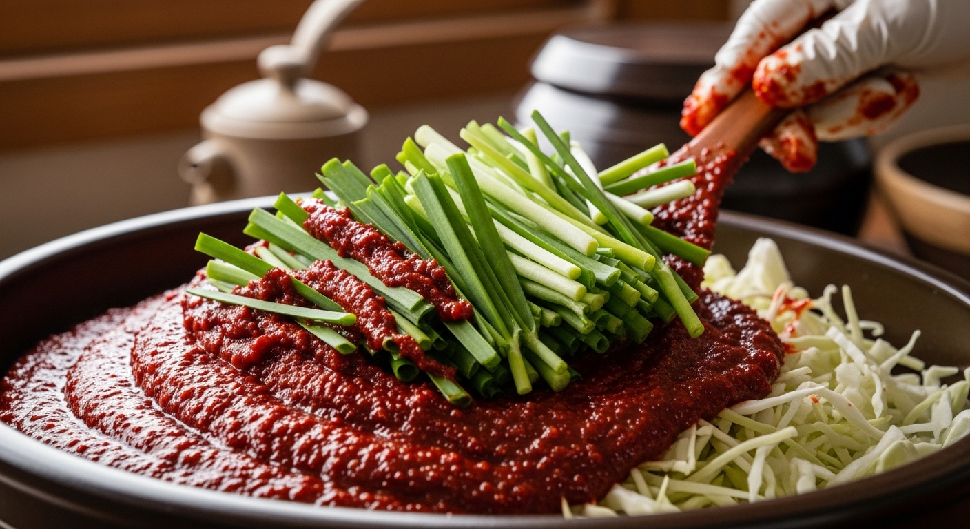 양념장을 미리 5분간 두면 고춧가루가 불면서 색이 훨씬 곱게 올라옵니다. 또한 액젓의 비율을 너무 줄이면 감칠맛이 떨어집니다. 매실청을 과하게 넣으면 단맛이 앞서므로 위 비율이 가장 안정적입니다.