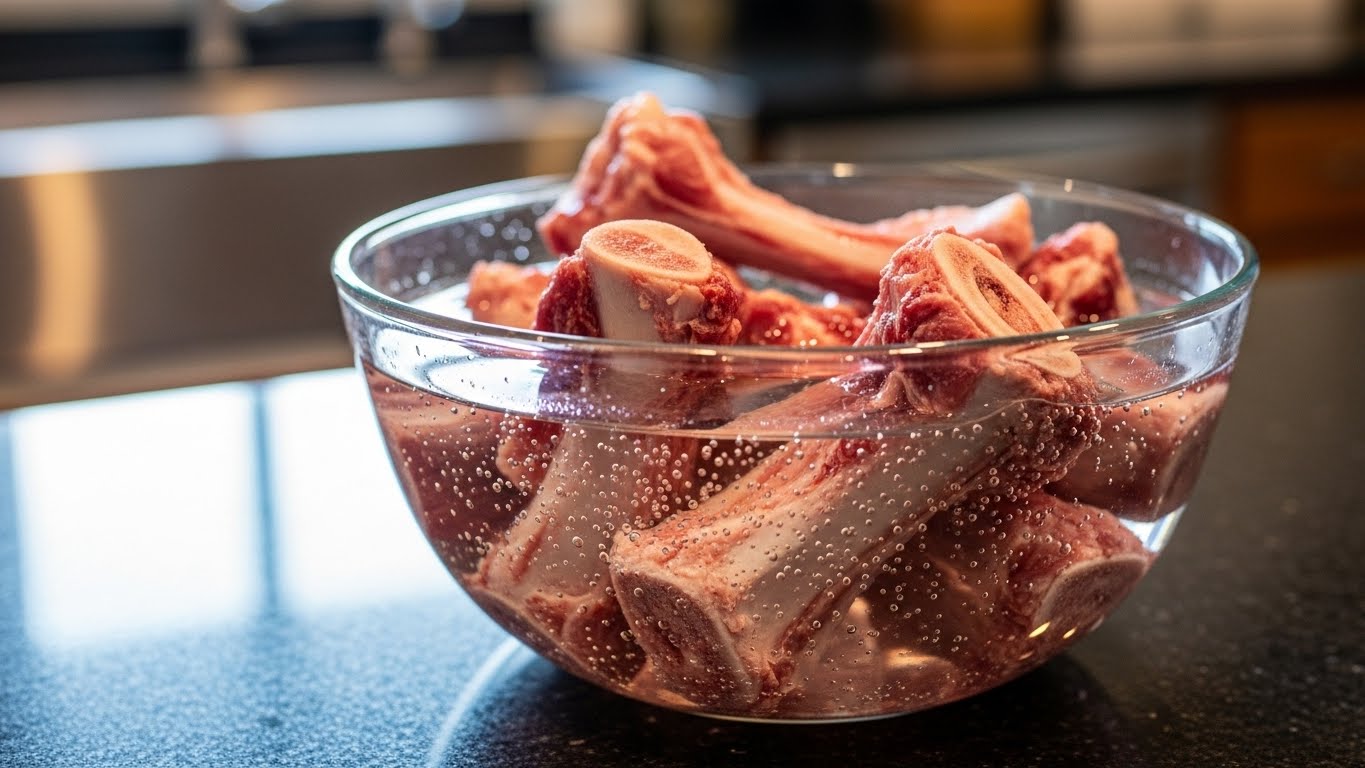 - 등뼈는 찬물에 1시간 이상 담가 핏물을 충분히 제거합니다.