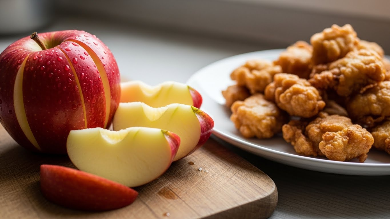 기름은 소화 속도를 늦추고, 사과의 산 성분은 위를 자극할 수 있어 더부룩함이나 속쓰림이 생길 수 있습니다.