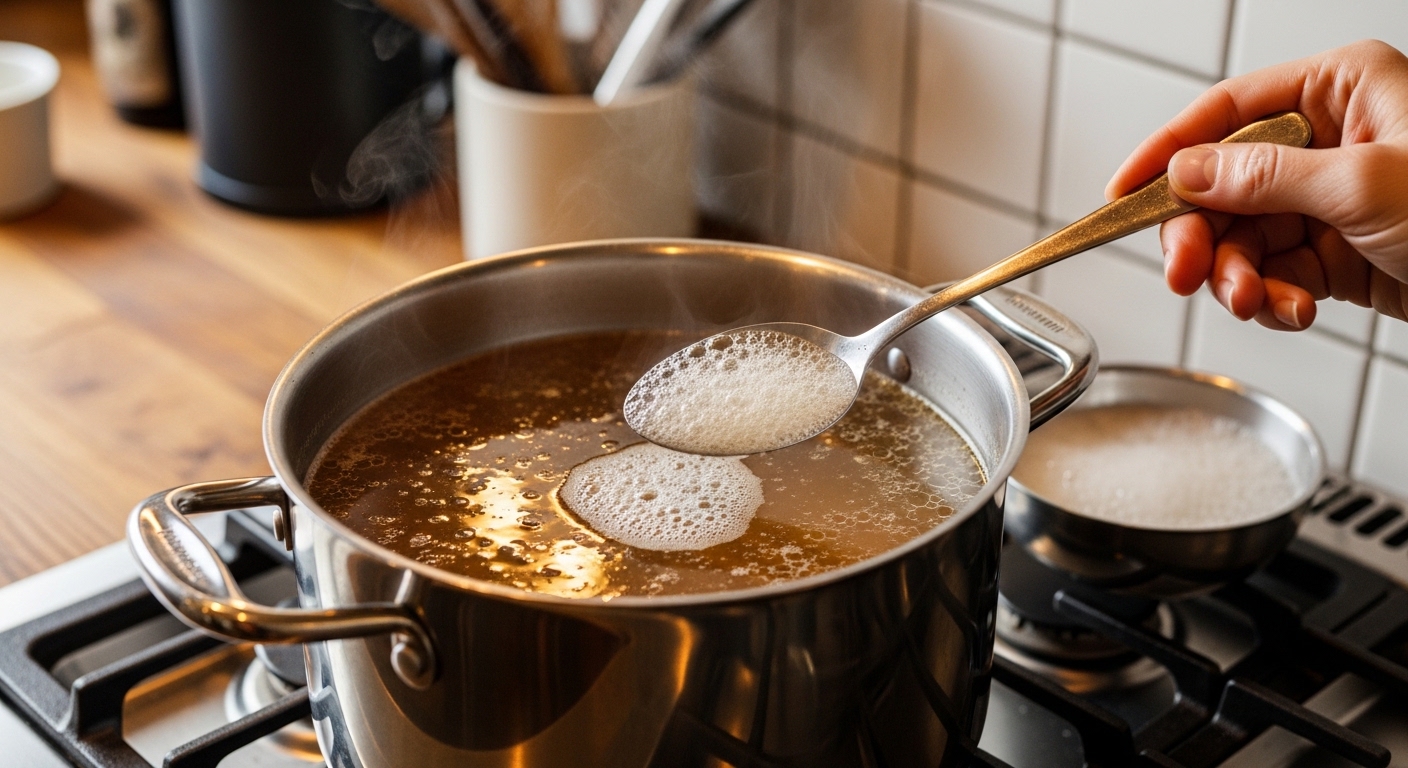 - 3단계 : 끓어오르면 거품을 제거하고 중불로 줄여 5분간 끓입니다.