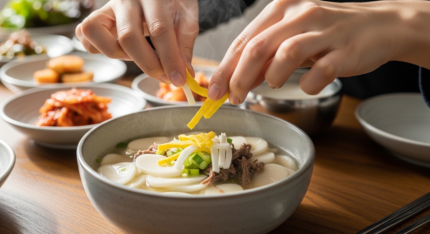 마무리 단계가 완성도를 좌우합니다. 작은 차이가 소고기떡국 맛있게 끓이는법의 깊이를 만듭니다.