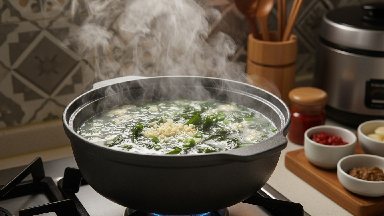 마지막 5분이 소고기미역국 완성도를 좌우합니다. 이 단계만 지켜도 집밥이 한 단계 달라집니다.
