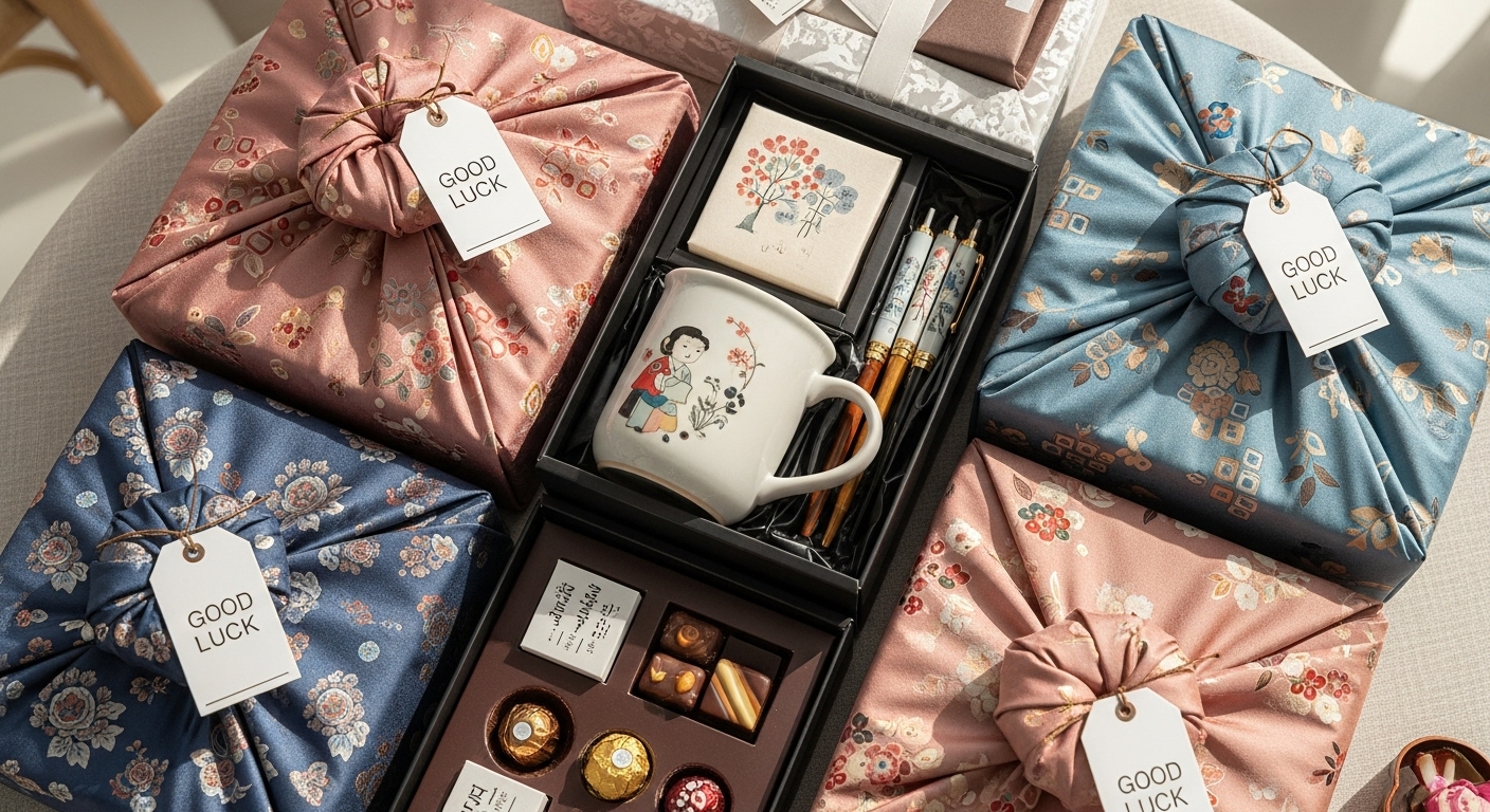 - 붙는다 는 의미를 담은 엿과 찹쌀떡, 초콜릿 등을 예쁘게 포장해 전하면 부담 없이 마음을 표현할 수 있습니다.