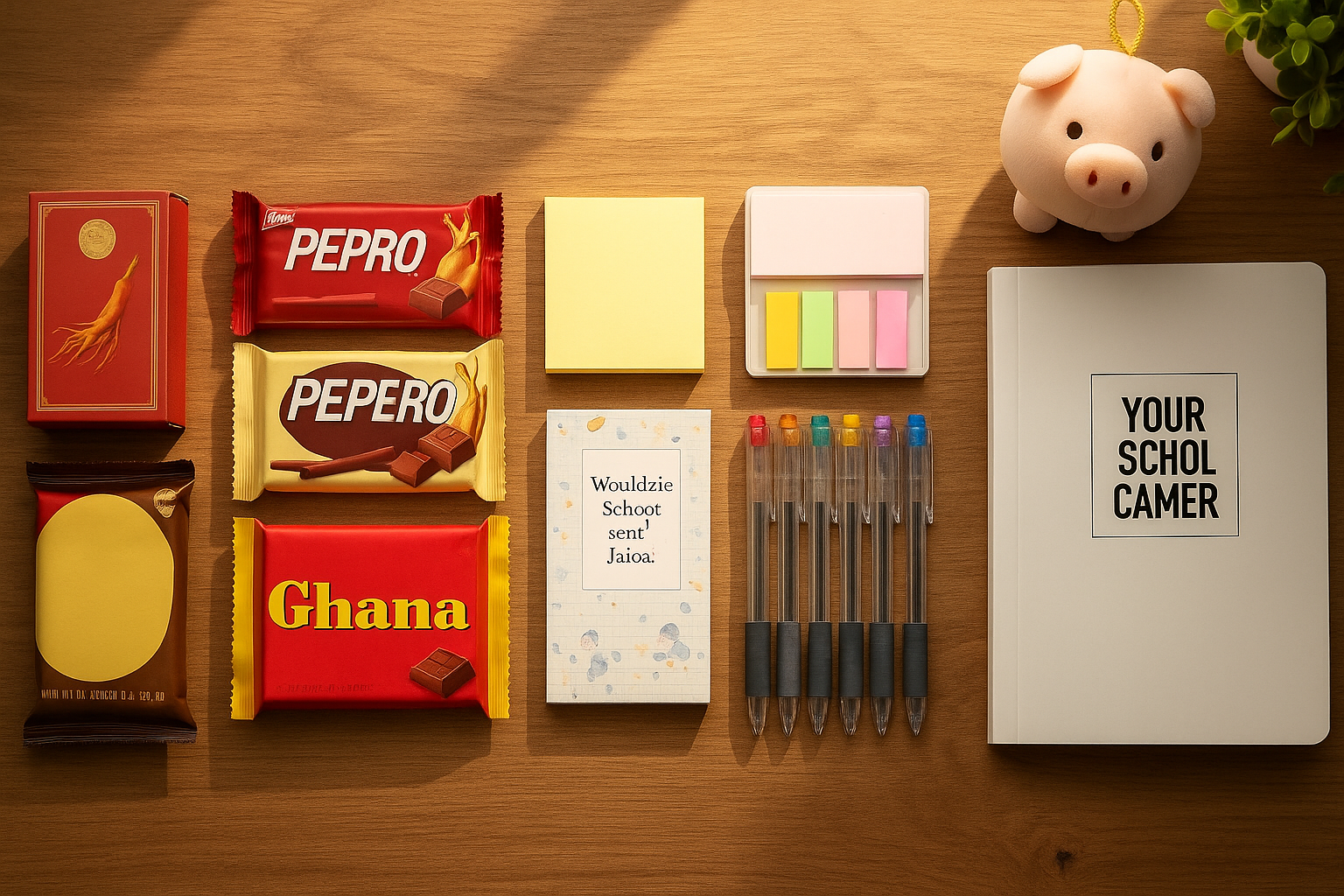 크게 다르진 않지만 여학생에게는 감성 포장형 응원템(캔들이나 키링), 남학생에게는 실용형 간식 세트나 보온 용품이 선호됩니다.