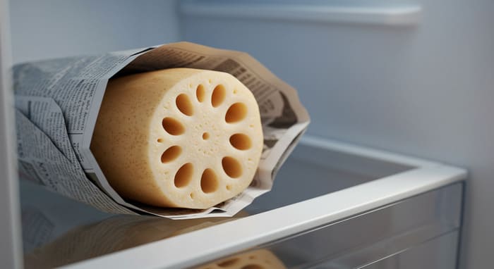 흙이 묻은 채로 신문지나 키친타월에 감싸 비닐 팩에 넣어 밀봉한 후 냉장실 채소 칸에 보관합니다. 흙을 씻어낸 연근은 갈변을 막기 위해 식초를 약간 넣은 물에 담가 보관하는 것이 좋습니다.