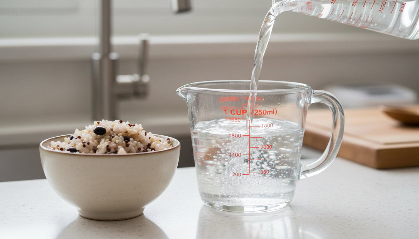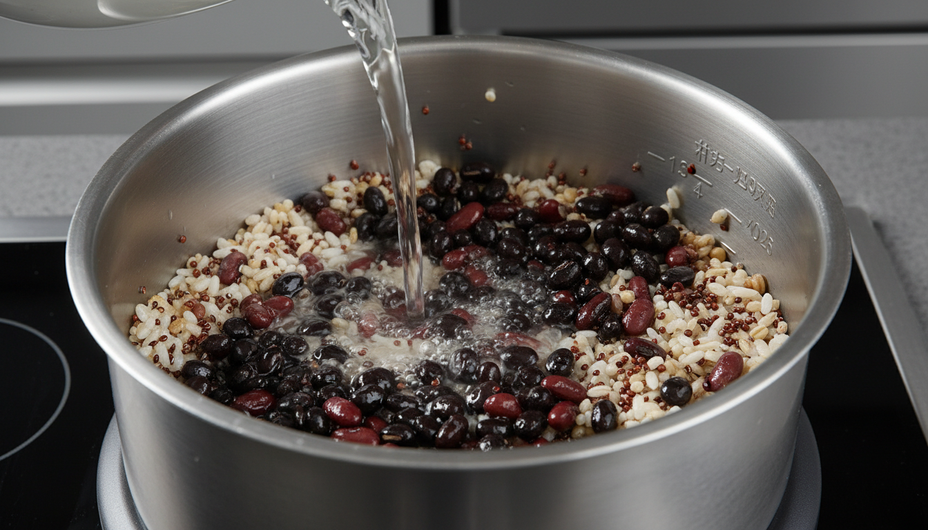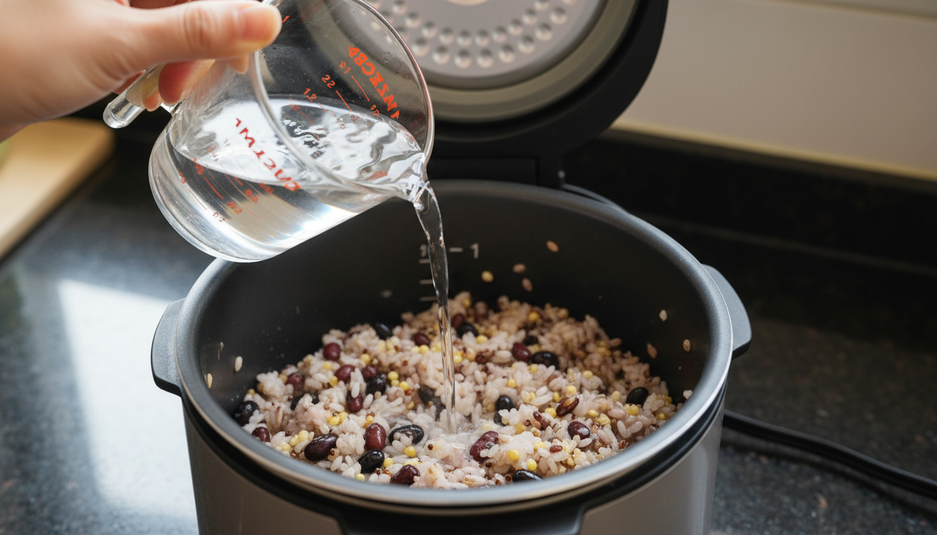 - 오곡밥 물비율 기준으로 물을 붓습니다.