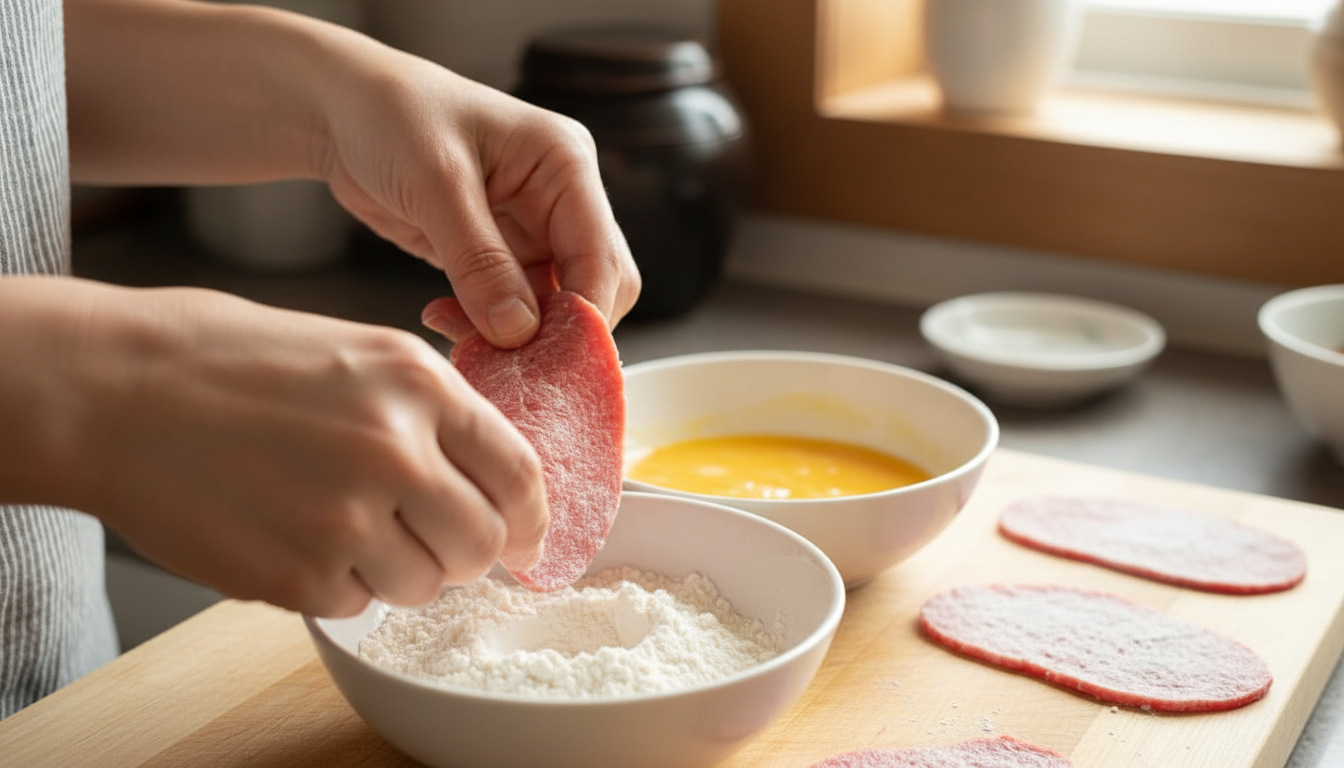 식감 차이는 고기 손질에서 시작됩니다. 부드러운 육전 비법은 연육과 휴지 과정에 있습니다.