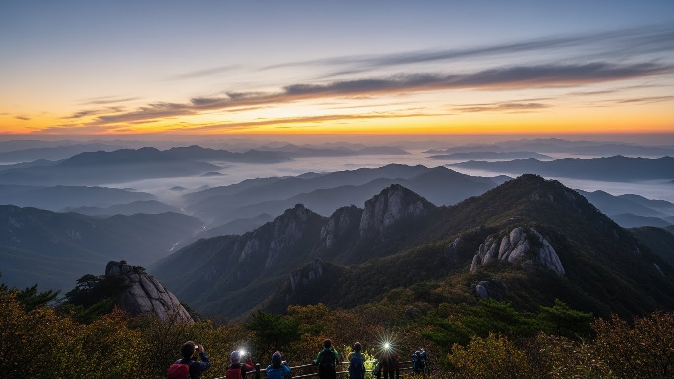 - 웅장한 암릉 사이로 빛이 퍼지는 순간이 압도적인 감동을 줍니다.