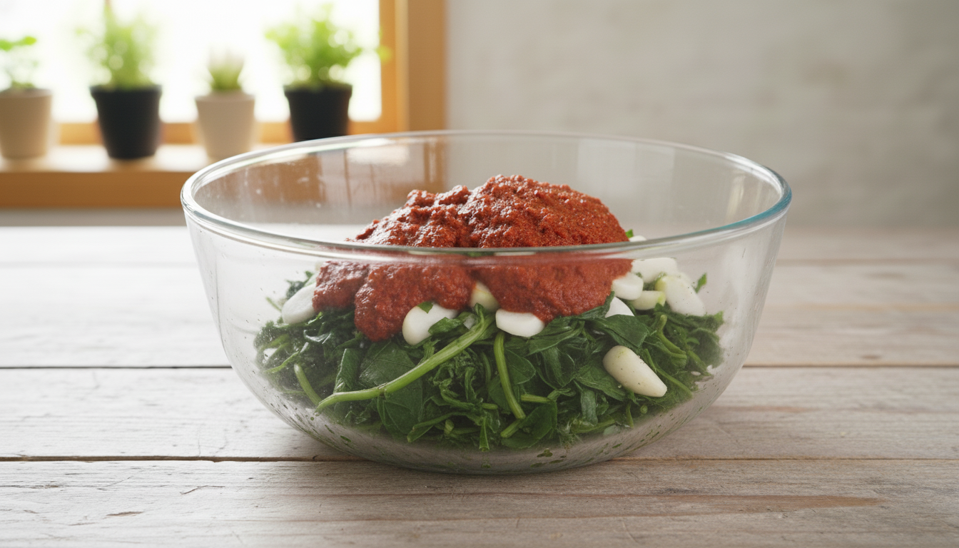 양념은 총각무 알타리김치 담는법에서 가장 중요한 부분입니다. 김치의 첫맛부터 익었을 때의 뒷맛까지 좌우하는 요소이기 때문에 배합 비율이 매우 중요합니다.