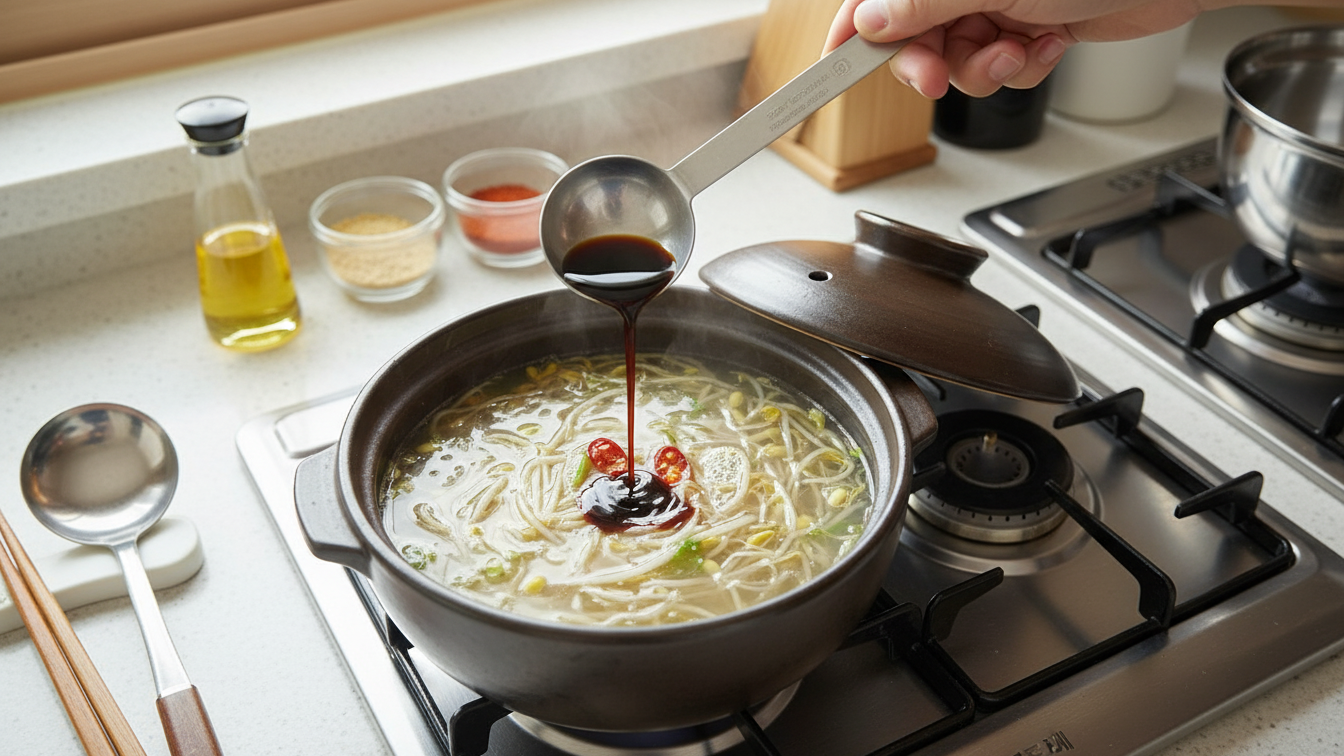 육수와 간 맞추기 콩나물국