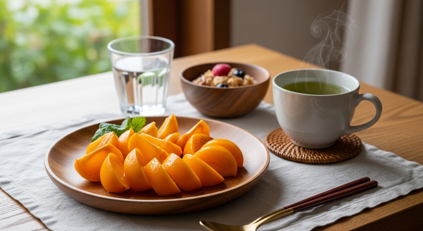 - 숙취 해소 및 소화 촉진 : 감의 타닌 성분은 알코올 해독 작용을 도와 숙취 해소에 이롭습니다. 또한, 식이섬유가 풍부하여 장 운동을 활발하게 하고 소화를 돕는 효능도 있습니다.