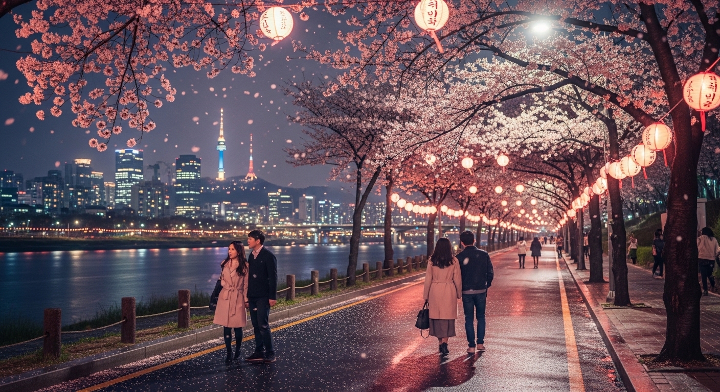 - 서울 여의도 - 4월 초, 접근성 최고, 야간 조명 벚꽃 인기